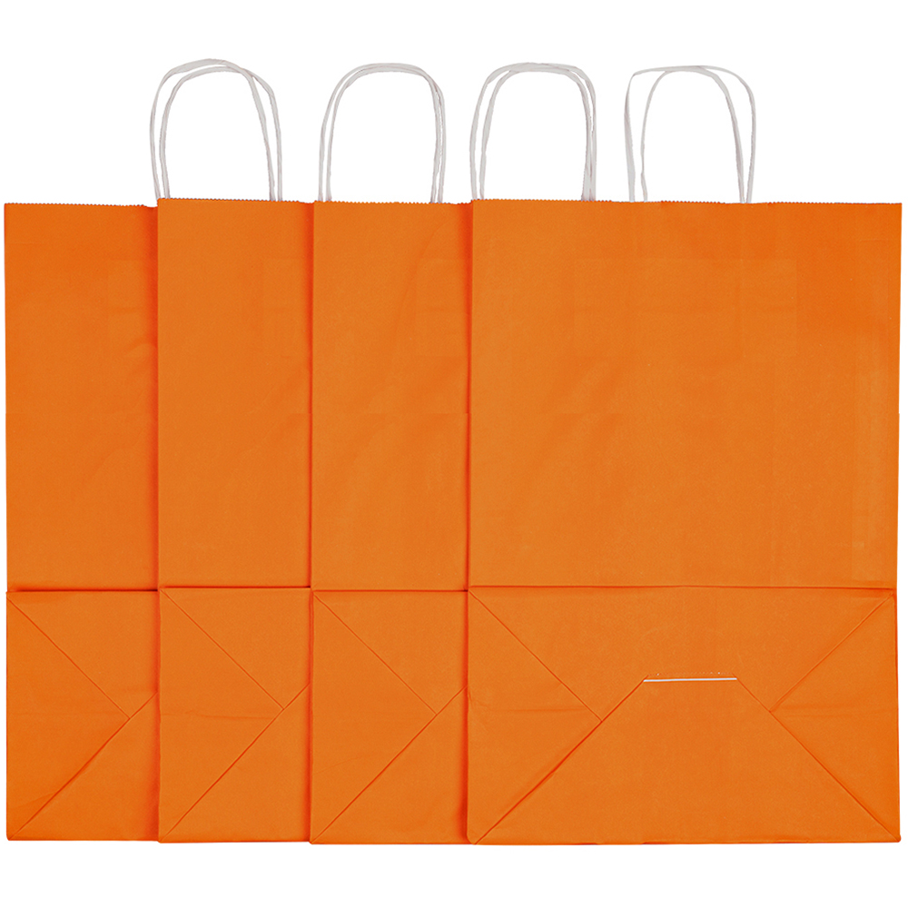 Пакеты с крученой ручкой используются для упаковки, переноски подарков. Отличаются оригинальным оранжевым цветом.