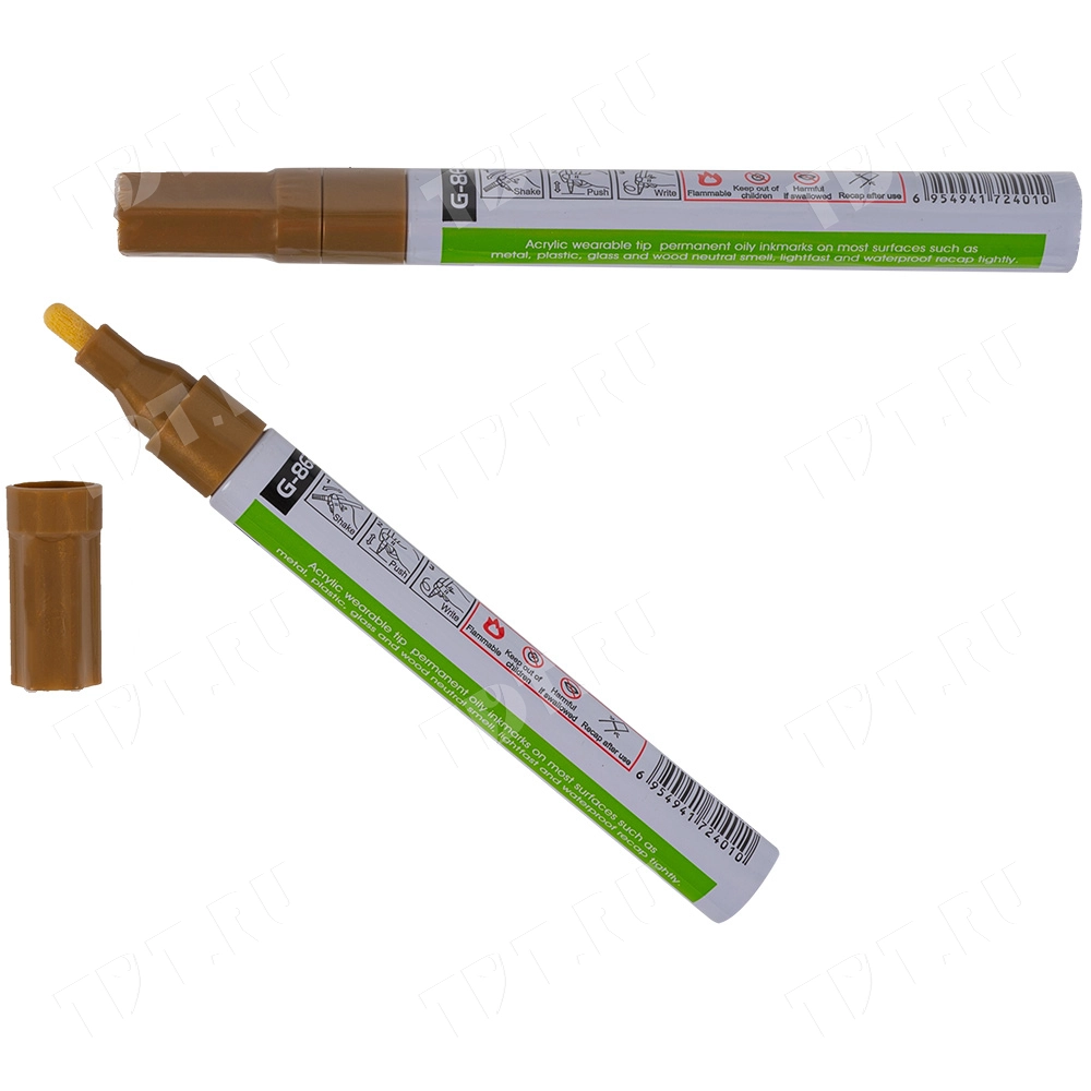 Маркер-краска Gxin G-862A – профессиональный лаковый перманентный маркер на масляной основе, толщиной пера 4 мм, золотого цвета, круглый наконечник. Продается поштучно. Производится в Китае.