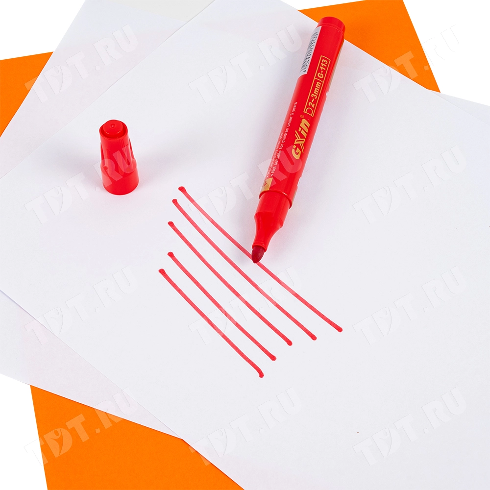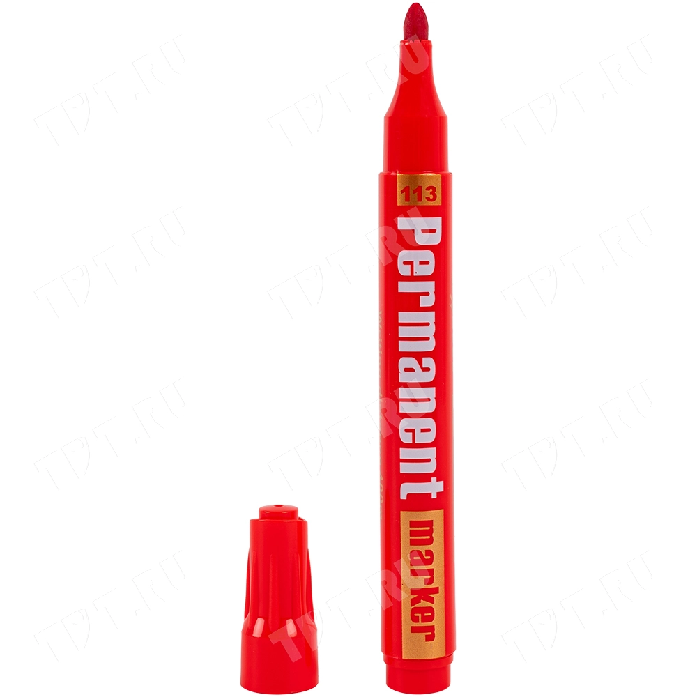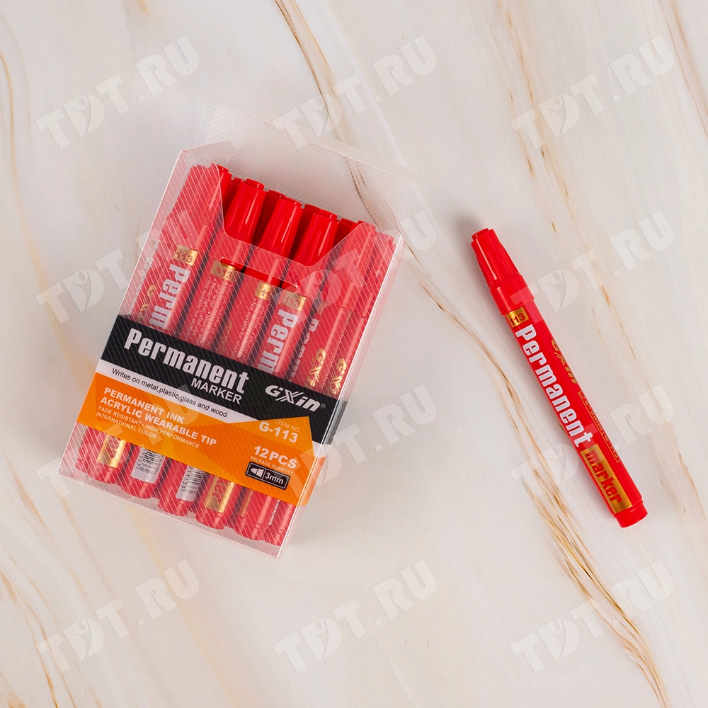 Маркер перманентный Gxin G-113, на спиртовой основе, толщиной пера 3 мм, красного цвета, пулевидный наконечник. Продается поштучно. Производится в Китае.
