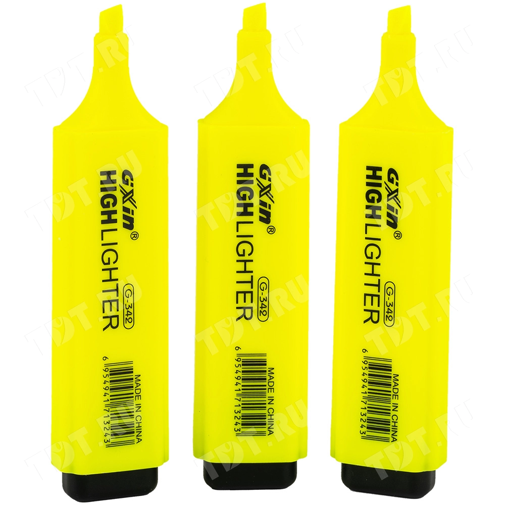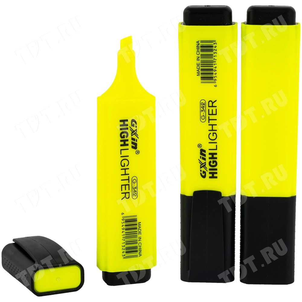 Текстовыделитель Gxin Highlighter G-342, на водной основе, толщиной пера 2-5 мм, желтого цвета, скошенный наконечник. Продается поштучно. Производятся в Китае.