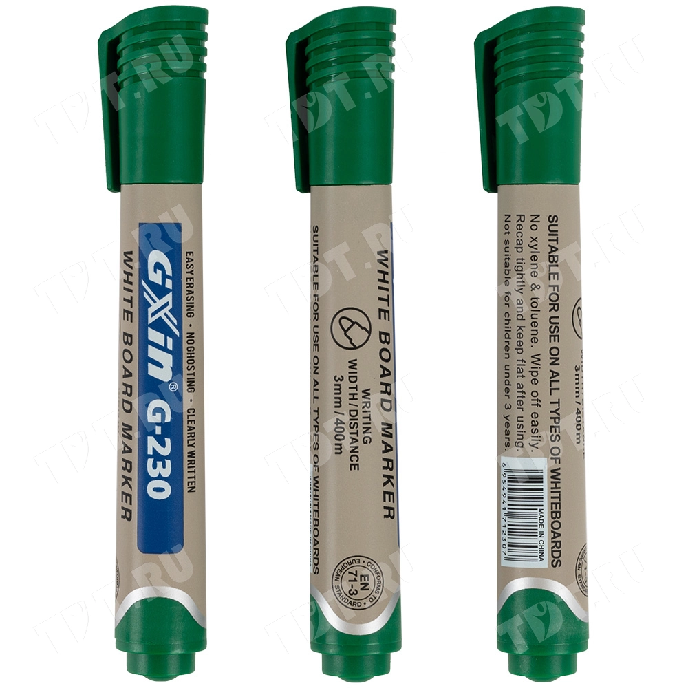 Маркер Gxin G-230 для любых магнитных досок, на спиртовой основе, толщиной пера 3 мм, зеленого цвета, пулевидный наконечник. Продается поштучно. Производится в Китае.