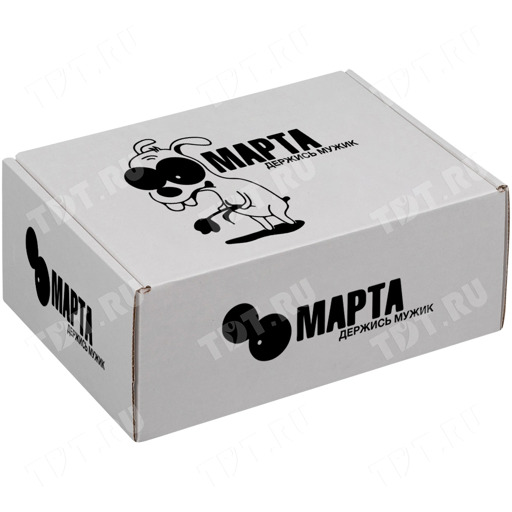 Подарочная коробка «С 8 Марта! - Держись мужик», длиной 216 мм, шириной 175 мм и высотой 106 мм. Изготовлена из гофрокартона Т-23 В. Полезный объём — 4 л.