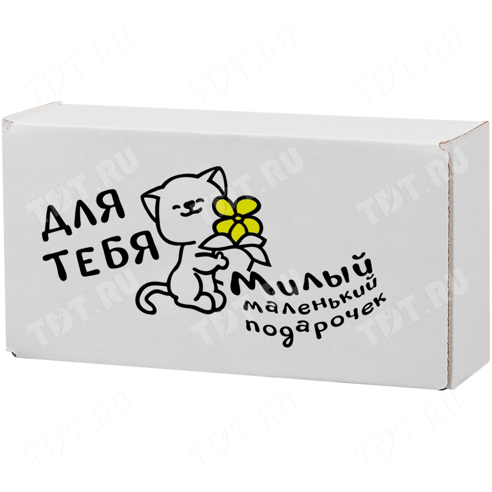Подарочная коробка «Для тебя милый маленький подарочек», длиной 170 мм, шириной 90 мм и высотой 50 мм. Изготовлена из микрогофрокартона Е-22. Полезный объём — 0.76 л.