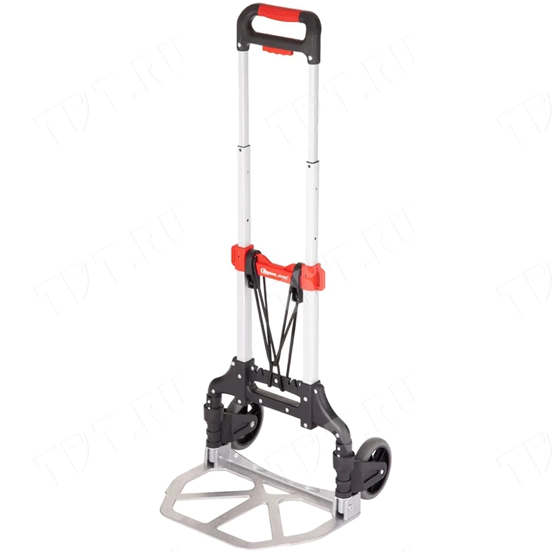 Компактная складная тележка Стелла-техник MSX, двухколесная, ручная, грузоподъемностью 69 кг, размером площадки 39*23 см, диаметром колес 12.5 см, весом 3.45 кг. Ручка выдвигается до 100 см. Материал – алюминий, сталь, пластик, резина. Производится в Китае.