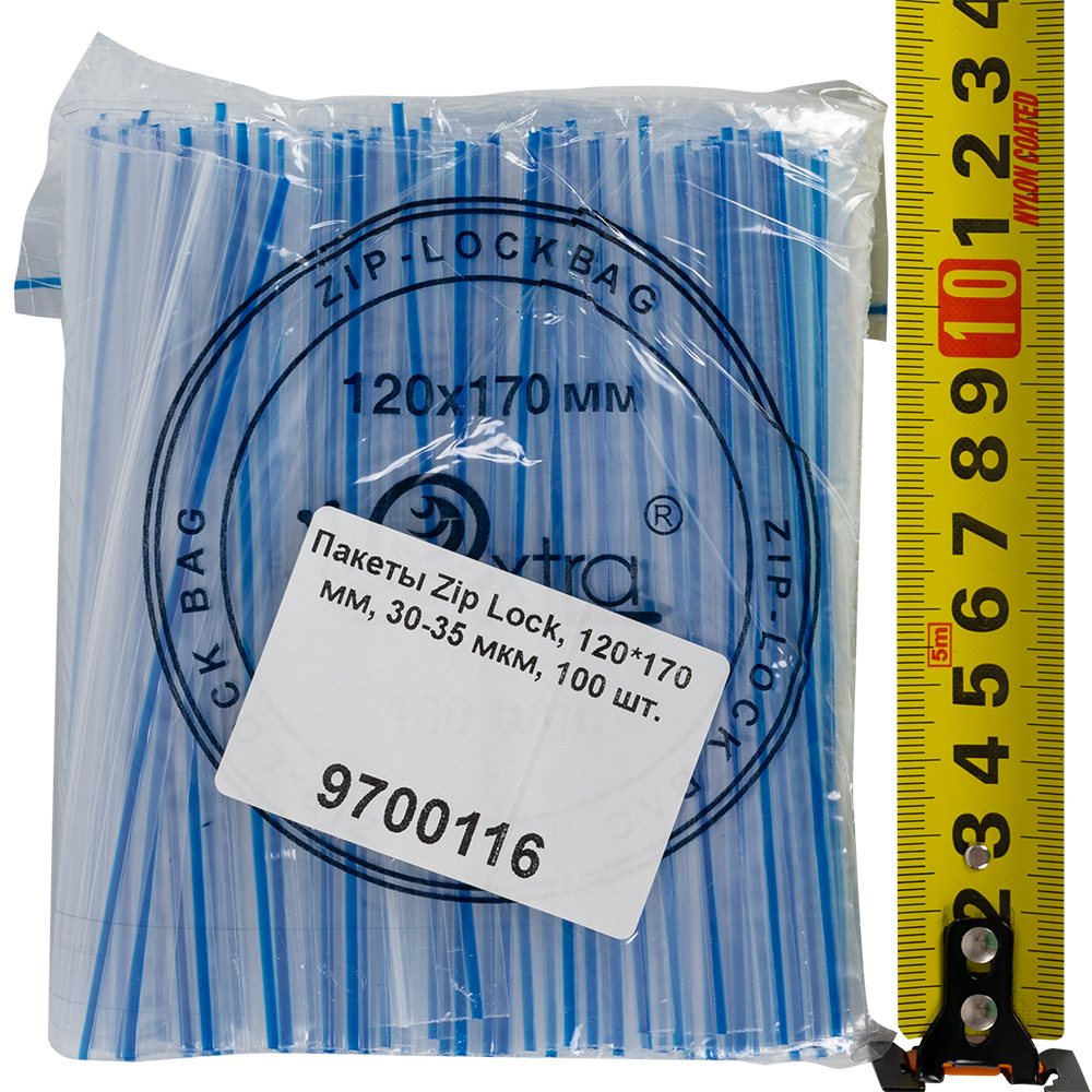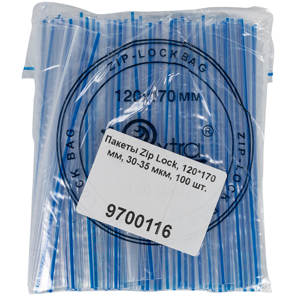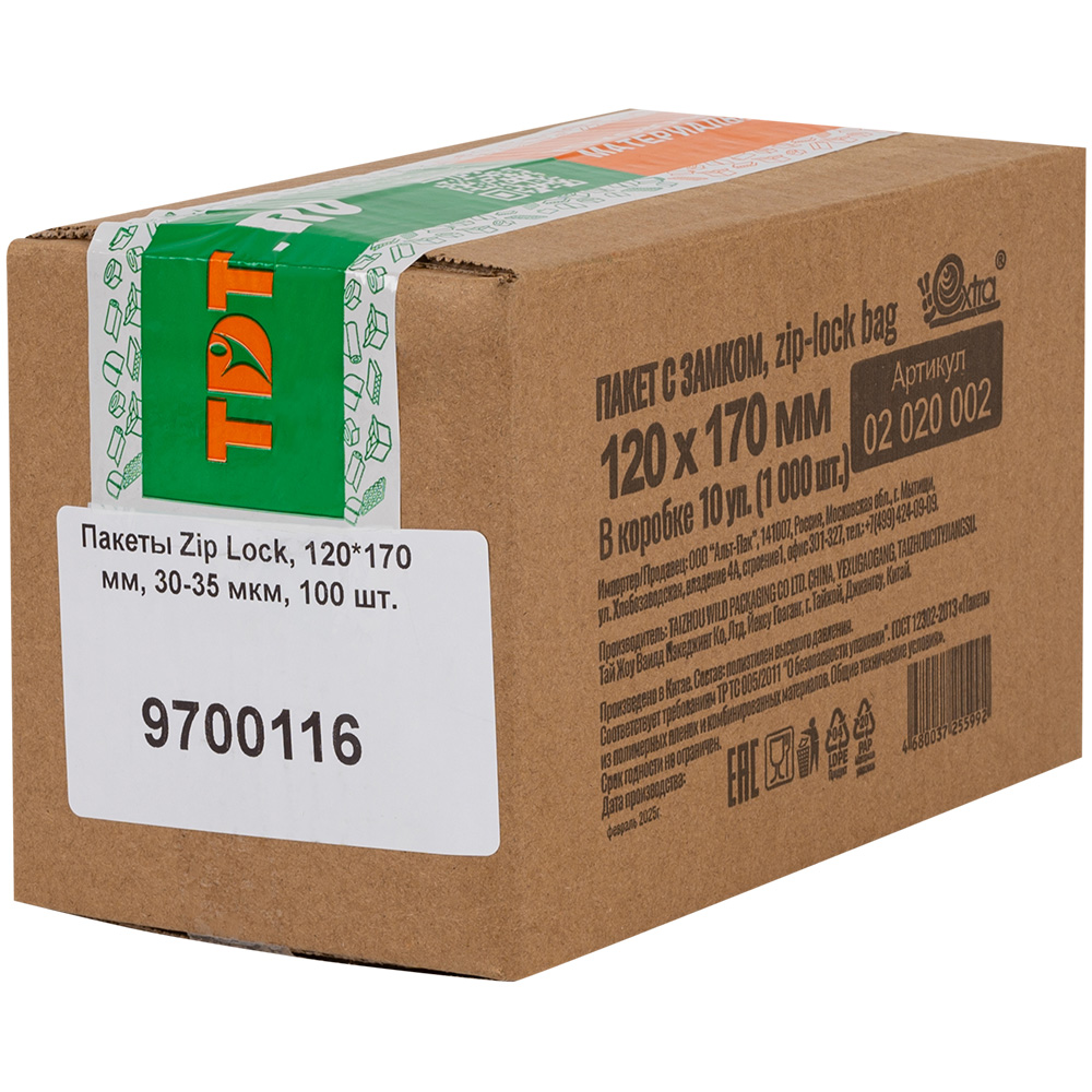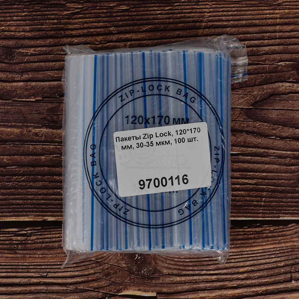 Пакеты Zip-Lock, прозрачного цвета с синей или красной полосой, длиной 170 мм, шириной 120 мм, толщиной 30-35 мкм, в упаковке по 100 штук. Материал – полиэтилен высокого давления (ПВД). Производятся в Китае.