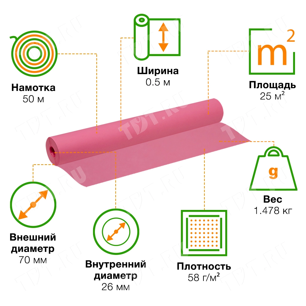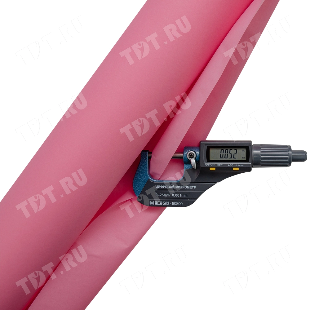 Пергамент в рулоне, розового цвета, шириной 50 см, намоткой 50 м, толщиной 50 мкм. Флористический пергамент изготовлен из натуральной целлюлозы и окрашен в насыщенный цвет. Прочный, не боится влаги. Производится в России.