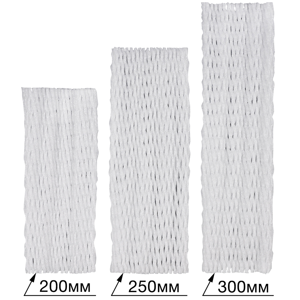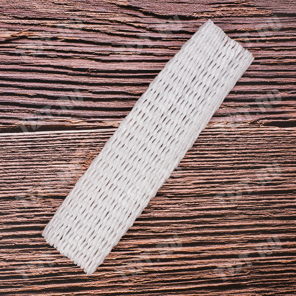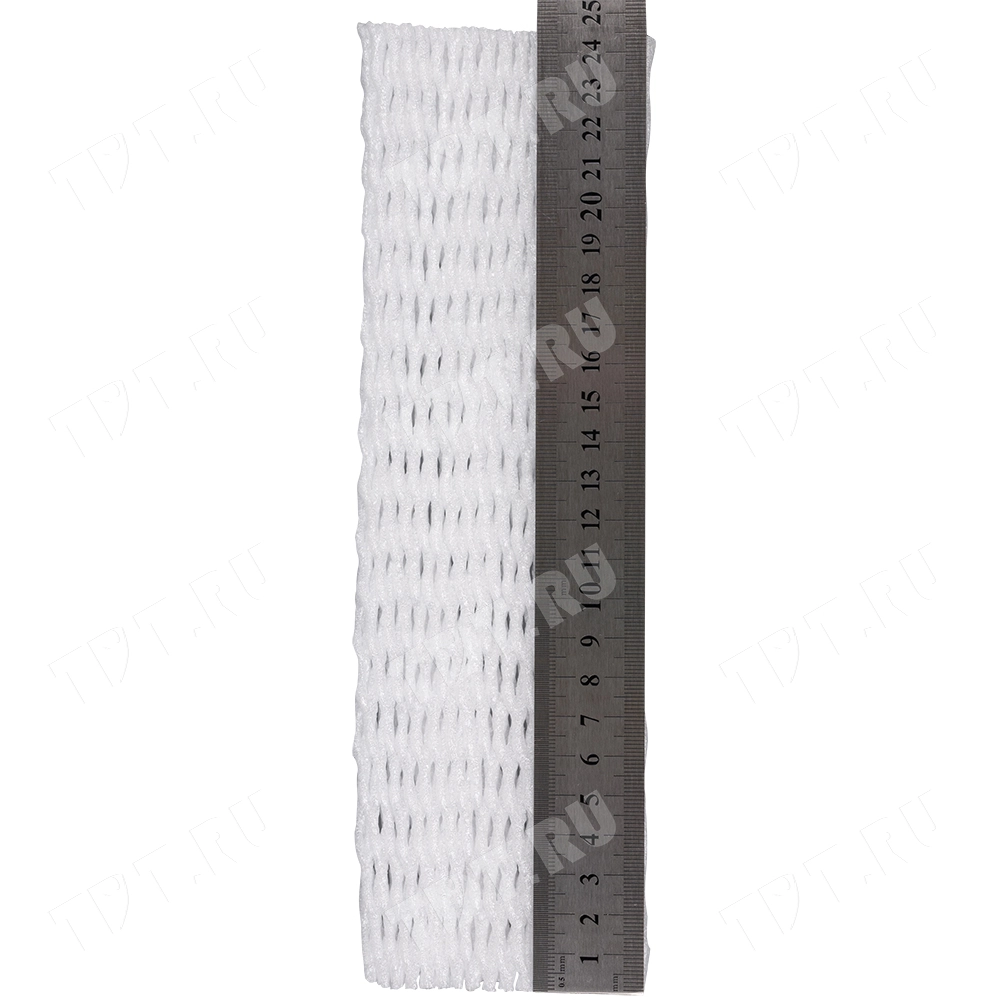 Упаковочная защитная сетка для овощей и фруктов, белого цвета, длиной 250 мм. Материал – вспененный полиэтилен. Производится в России.