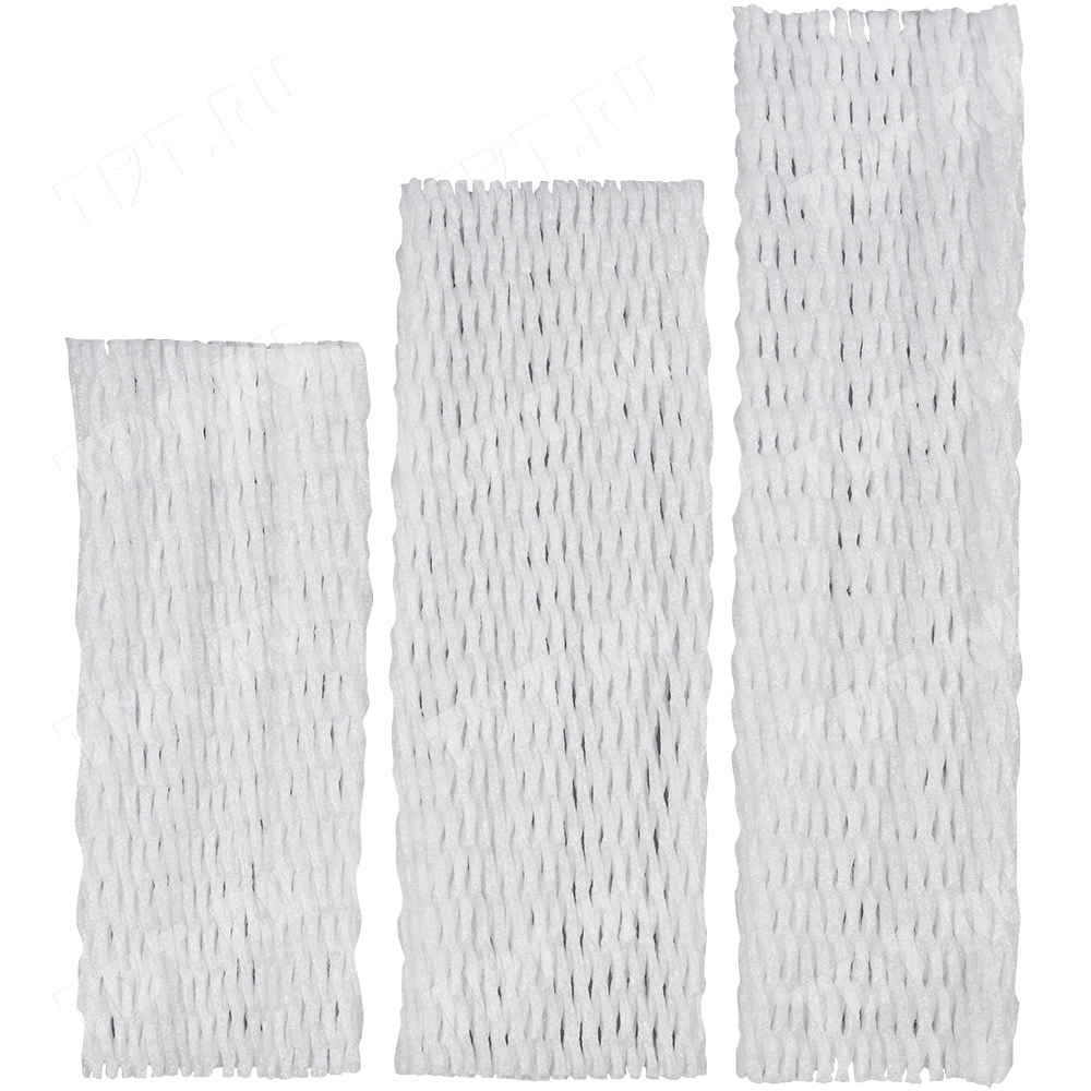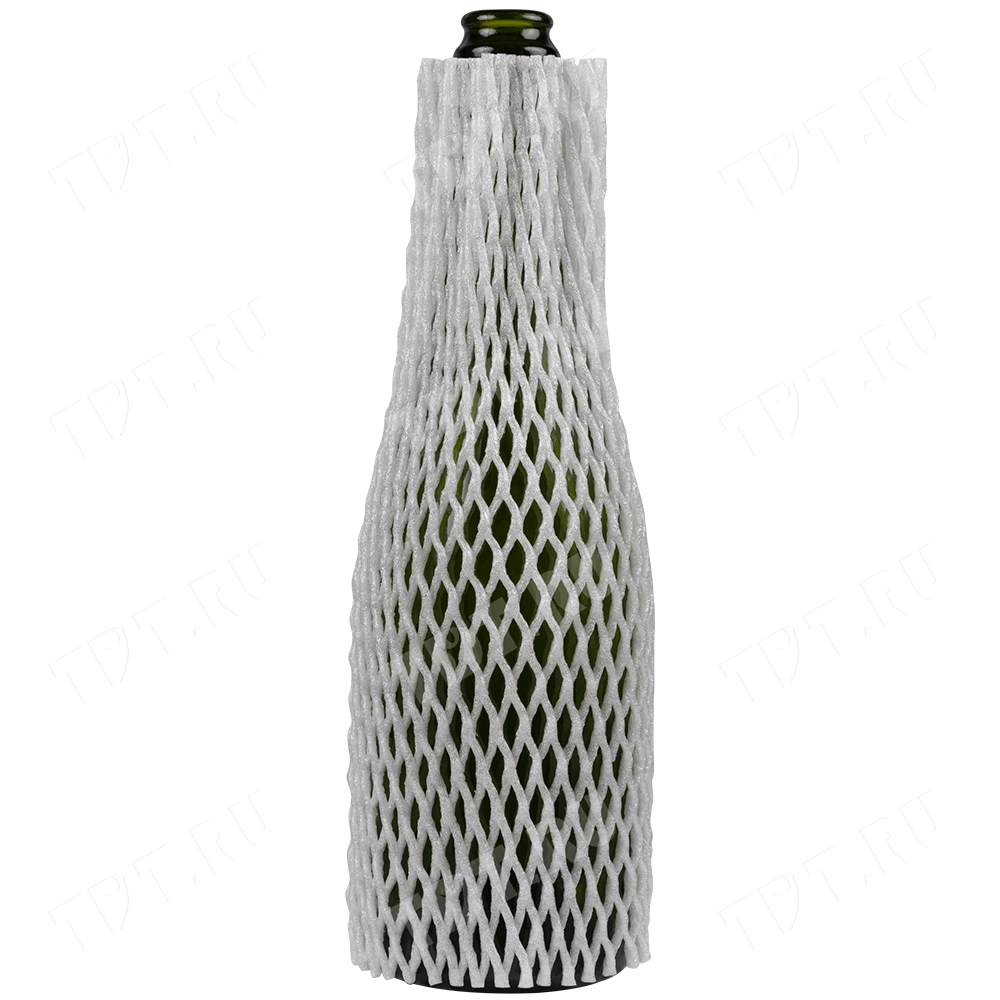 Упаковочная защитная сетка для бутылок, белого цвета, длиной 300 мм. Материал – вспененный полиэтилен. Производится в России.