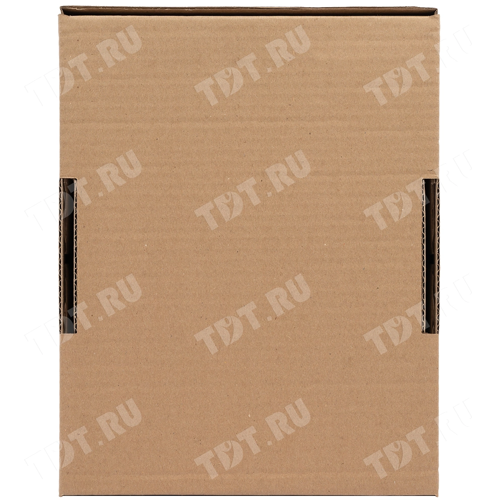 Бизнес Бокс А4 бурого цвета, длиной 225 мм, шириной 300 мм и высотой 100 мм. Изготовлен из гофрокартона Т-23 В. Полезный объём — 6.75 л.