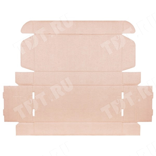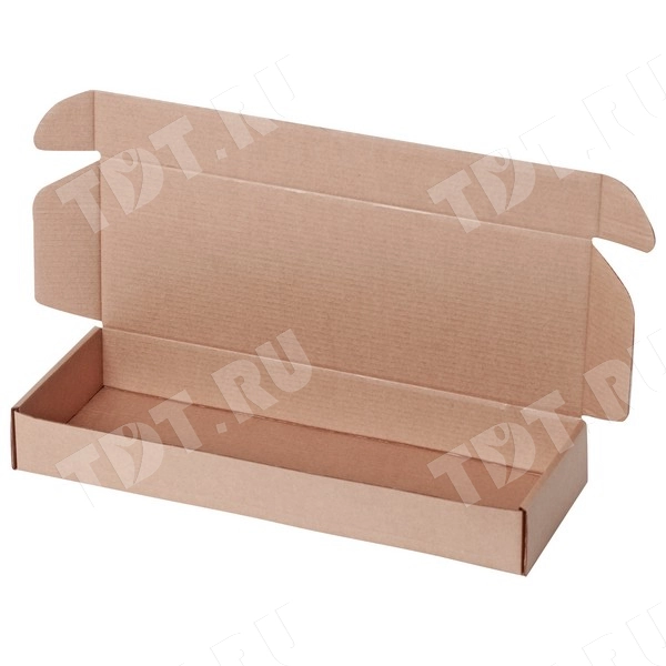 Короб КС-256 бурого цвета, длиной 530 мм, шириной 190 мм и высотой 70 мм. Изготовлен из гофрокартона Т-23 В. Полезный объём — 7 л.