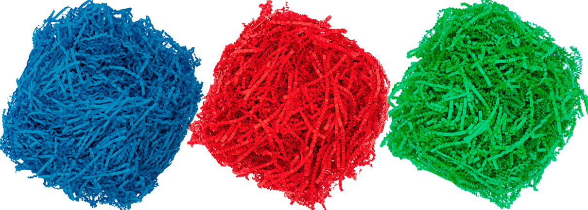 Цветной бумажный наполнитель для подарочных коробок создает эффект объема, добротности подарка, а также выполняет следующие функции: